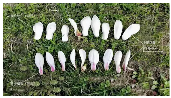 ▲白玉蘭:9瓣花瓣,花萼不分化,花被片純白為栽種型,基部稍粉為野生型。(圖片來(lái)源:網(wǎng)絡(luò))