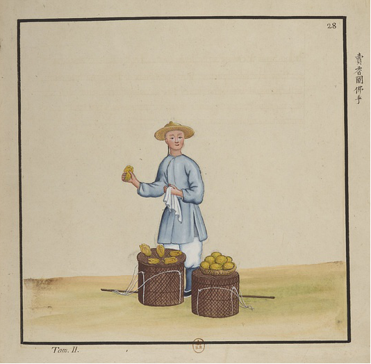 ▲清乾隆末 《北京市井風(fēng)俗圖·賣(mài)香櫞佛手》