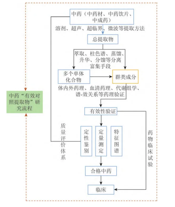 1、中藥“有效對照提取物”研究流程