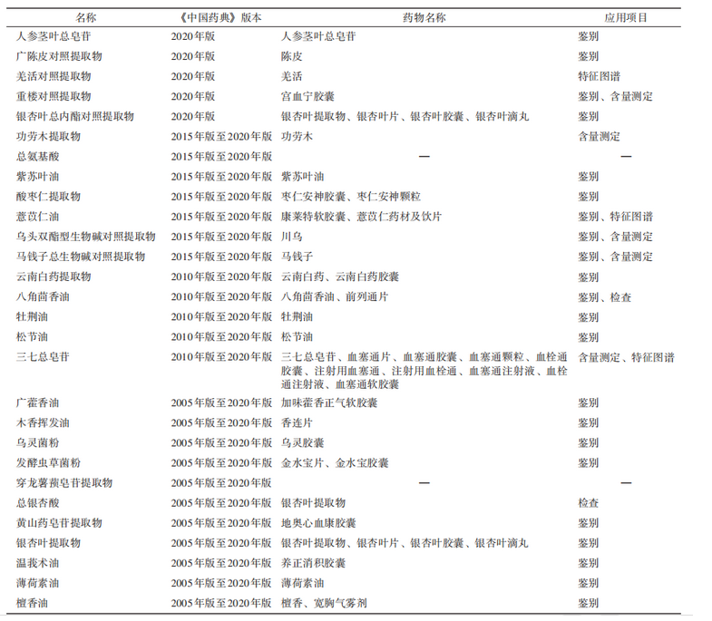 《中國藥典》2020年版將對照提取物定義為經(jīng)特定提取工藝制備的含有多種主要有效成分或指標性成分,用于中藥材 (含飲片)、提取物、中成藥等鑒別或含量測定的國家藥品標準物質(zhì),豐富了對照提取物的內(nèi)涵,增強對照提取物應(yīng)用于中藥質(zhì)量標準的科學(xué)性。