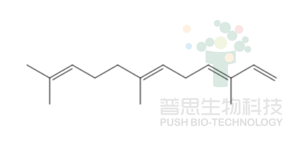 用途:茶、水果、花等多種植物的主要揮發(fā)性成分,呈花果香味,具有抗抑郁、抗菌消炎及自由基清除等活性,蘋果、梨等水果的虎皮病與α-法尼烯代謝以及活性氧積累密切相關(guān)