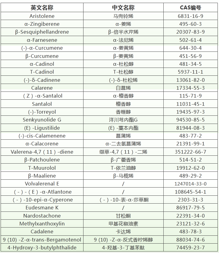 用途:沉香、廣藿香、黃芩、川木香等多種植物的主要揮發(fā)性成分,具有顯著的抗氧化、抗炎和抗腫瘤等活性