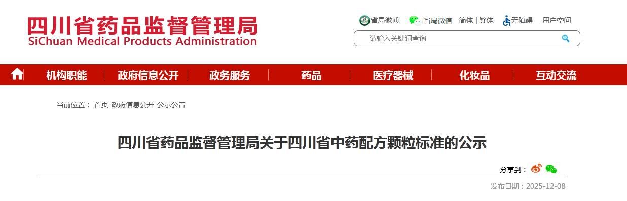 四川省藥品監(jiān)督管理局關(guān)于四川省中藥配方顆粒標(biāo)準(zhǔn)的公示