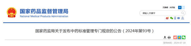國家藥監(jiān)局關(guān)于發(fā)布中藥標(biāo)準(zhǔn)管理專門規(guī)定的公告