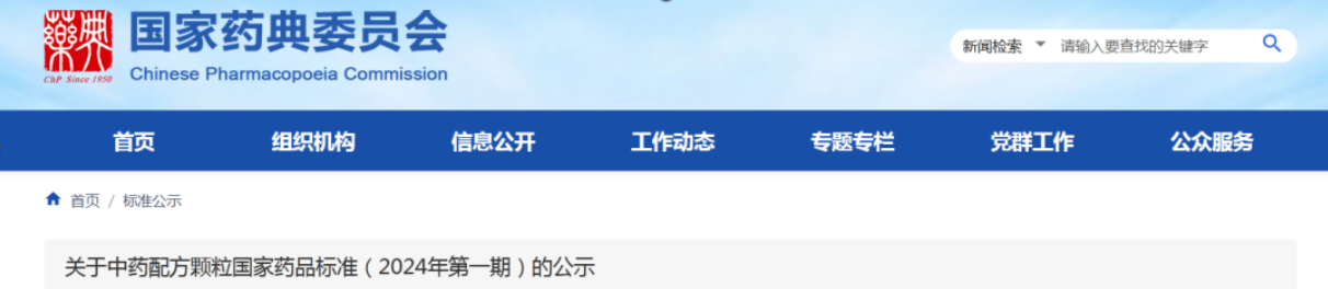 關(guān)于中藥配方顆粒國家藥品標(biāo)準(zhǔn)(2024年第一期)的公示