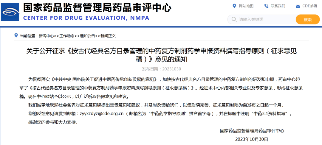 CDE發(fā)布3個(gè)關(guān)于中藥的指導(dǎo)原則征求意見稿